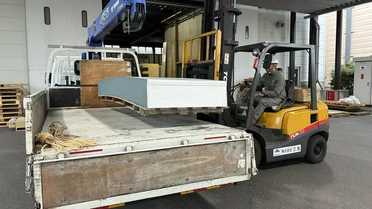 - 具体的な荷物は、床や壁に使う石膏ボードや住設機器・内装建材などです。