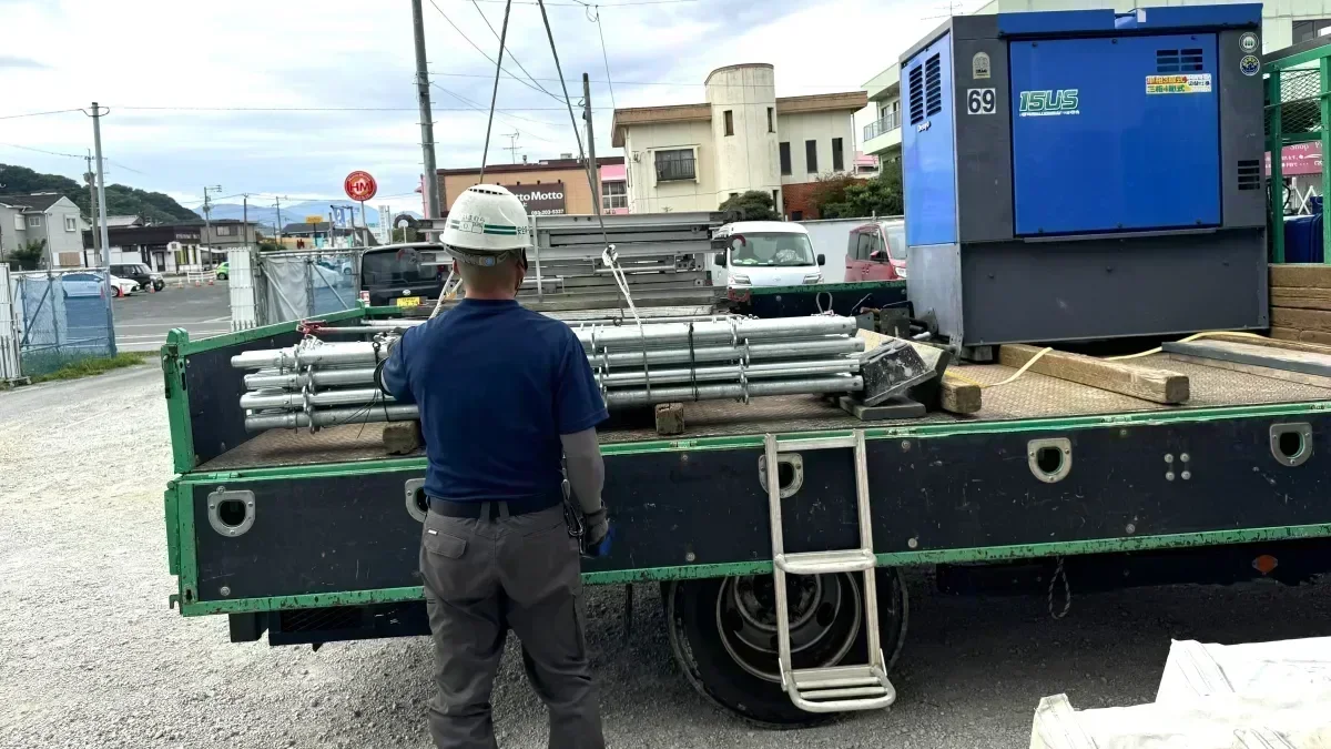 大型ユニック車による「建築資材・足場材・機械」などの地場配送