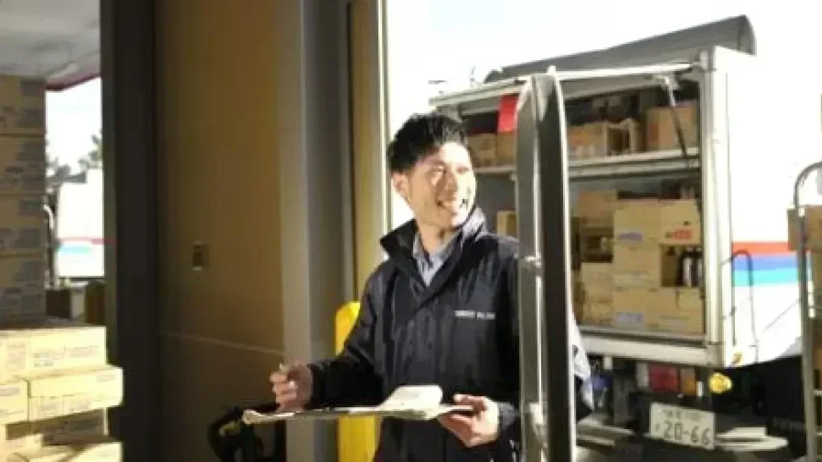 - 担当エリア内の自動販売機を回る「固定ルート配送」です。